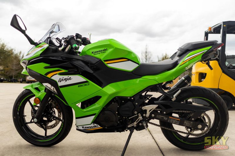 Make your statement with the Ninja® 500 sportbike. Turn heads with the aggressive styling Ninja® sportbikes are known for and set the tone with a 451cc twin-cylinder engine. Experience legendary Ninja performance on the sportbike designed to lead the crowd.